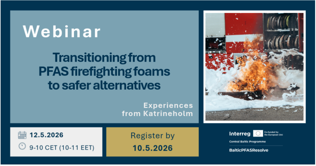 Vi välkomnar dig att delta i webbinariet ”Övergången från PFAS-baserade brandsläckningsskum till säkrare alternativ – erfarenheter från Katrineholm” som organiseras inom ramen för projektet BalticPFASResolve, ett projekt som delfinansieras av EU Interreg Central Baltic Programme den 12 maj 2026.